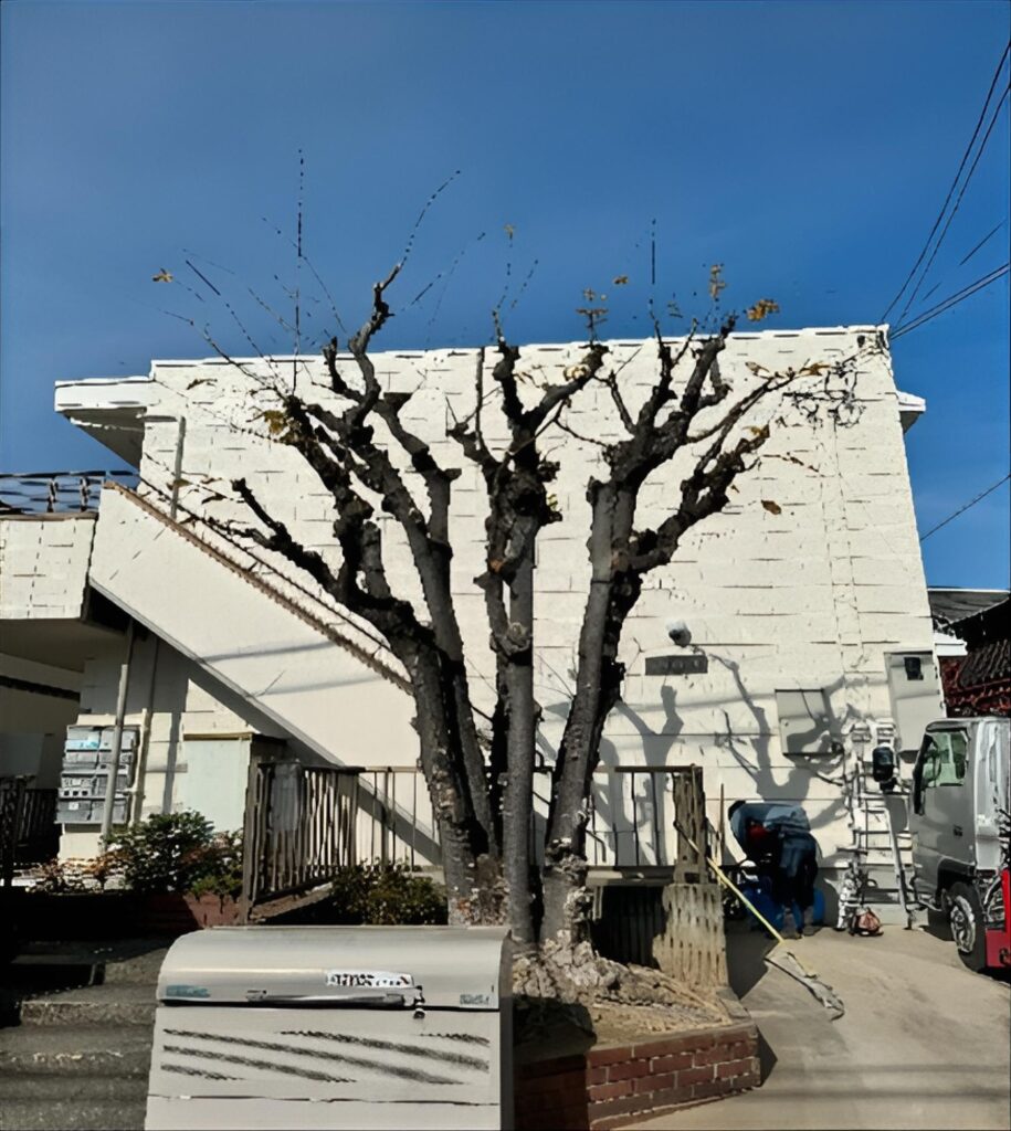危険木や老木を安全に処理。重機が入らない場所はツリークライミングで対応します。