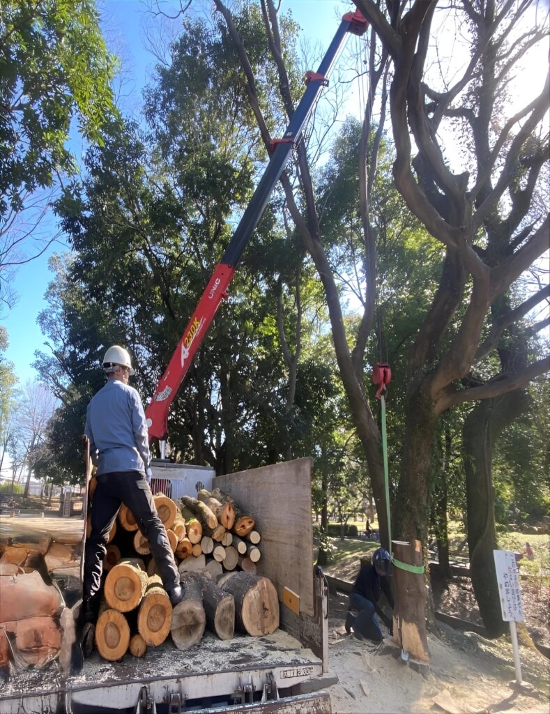 樹木の伐採後には、抜根・処分まで対応し、跡地の整備や新植準備も行います。